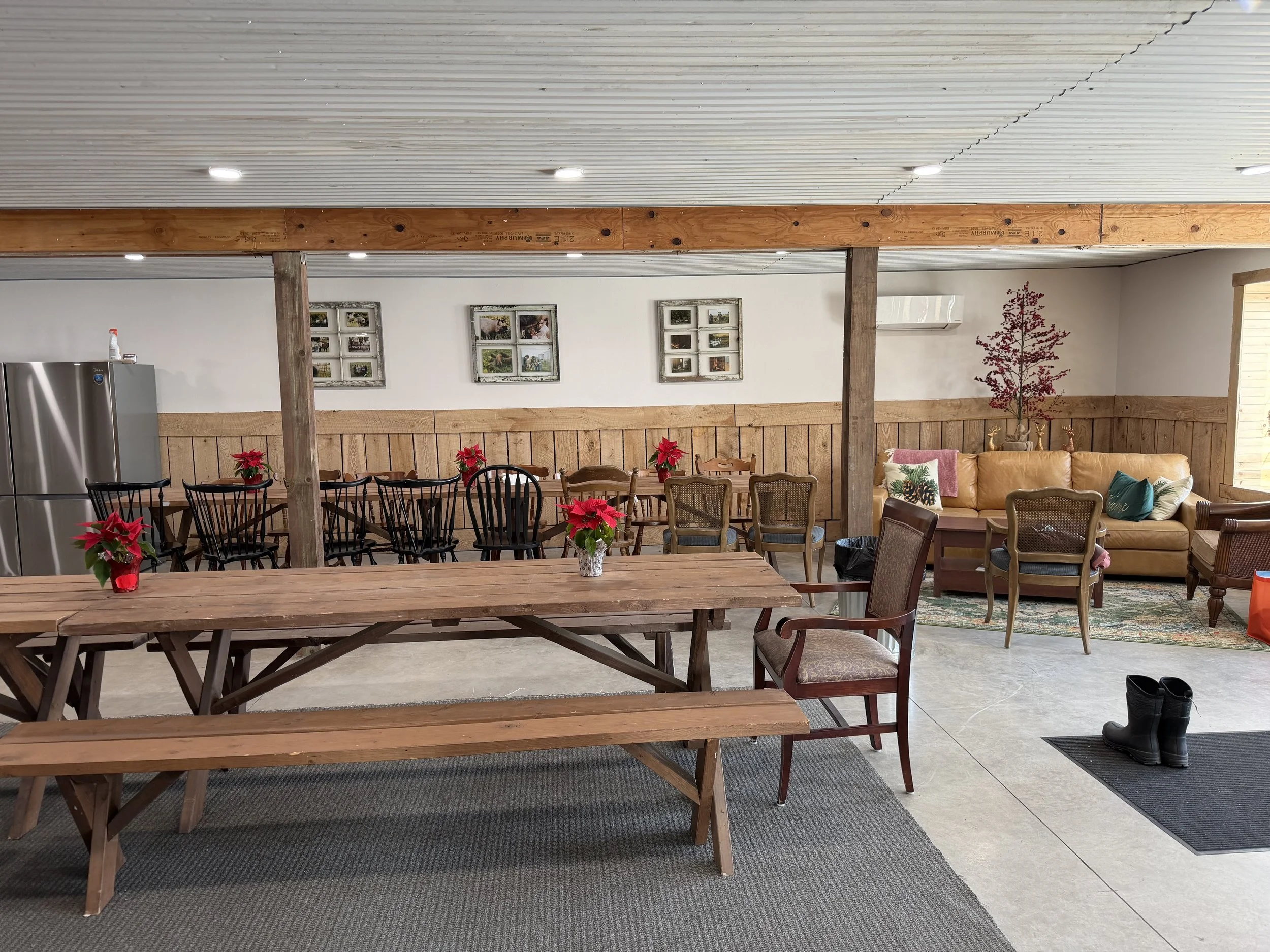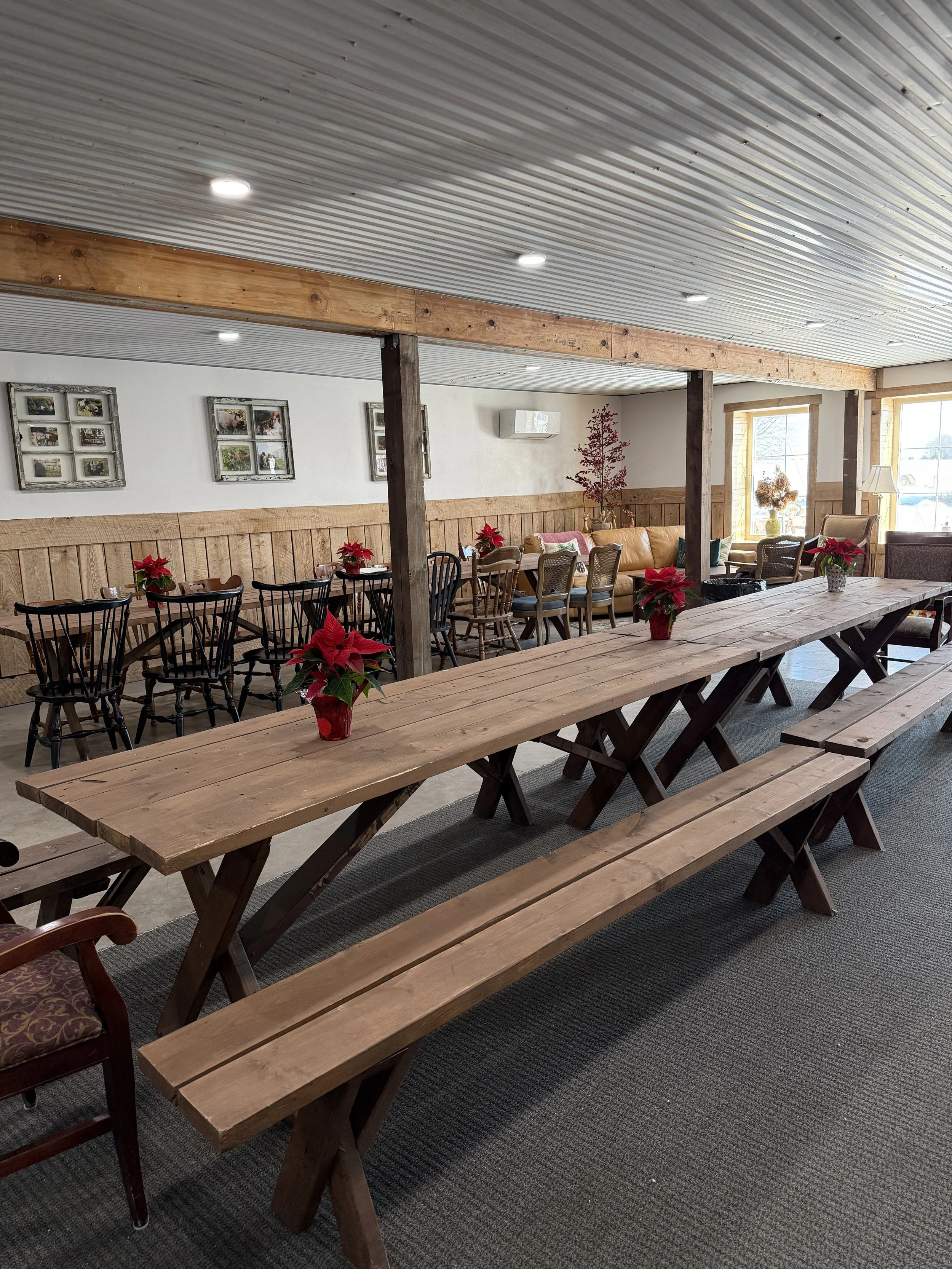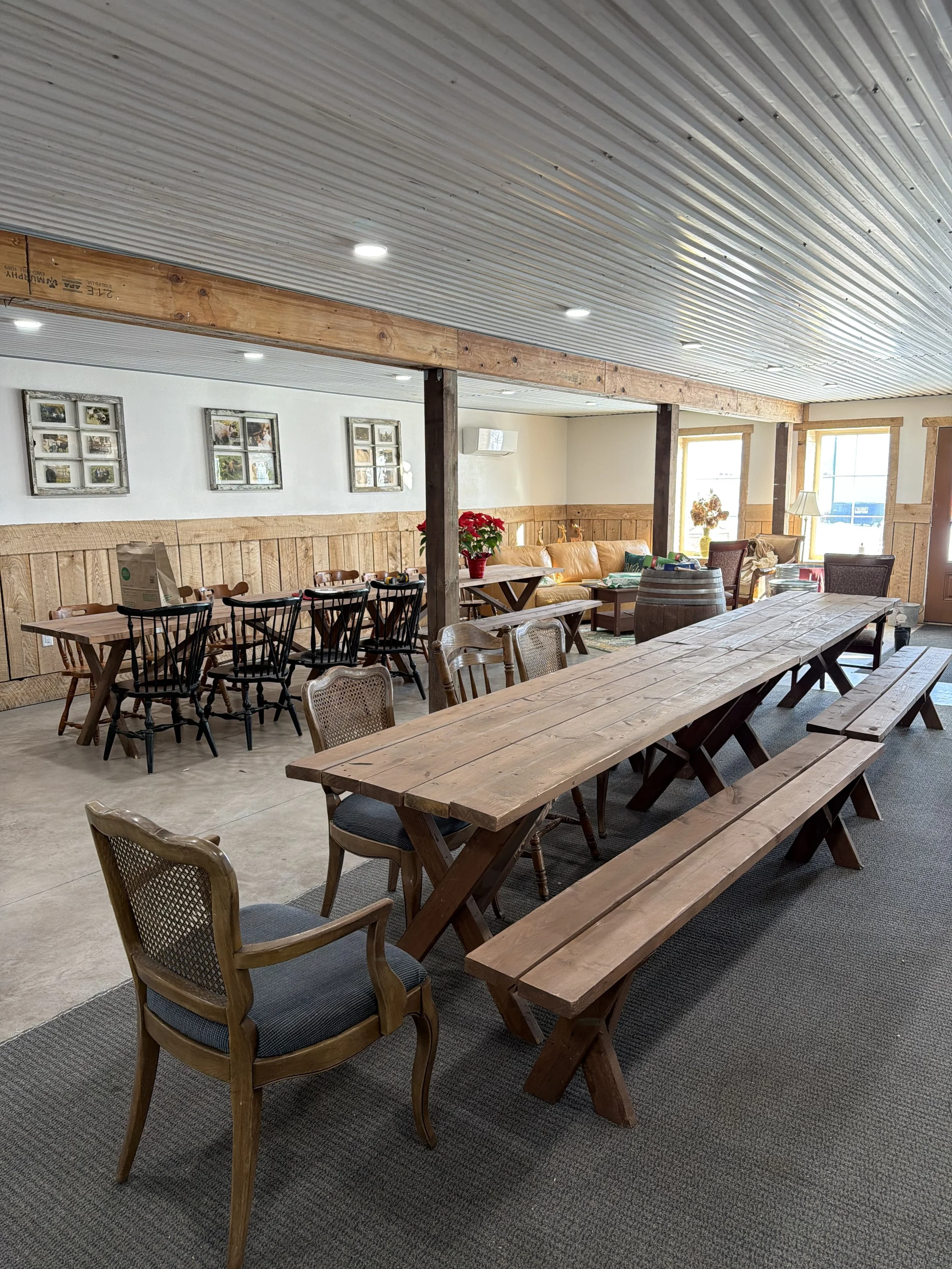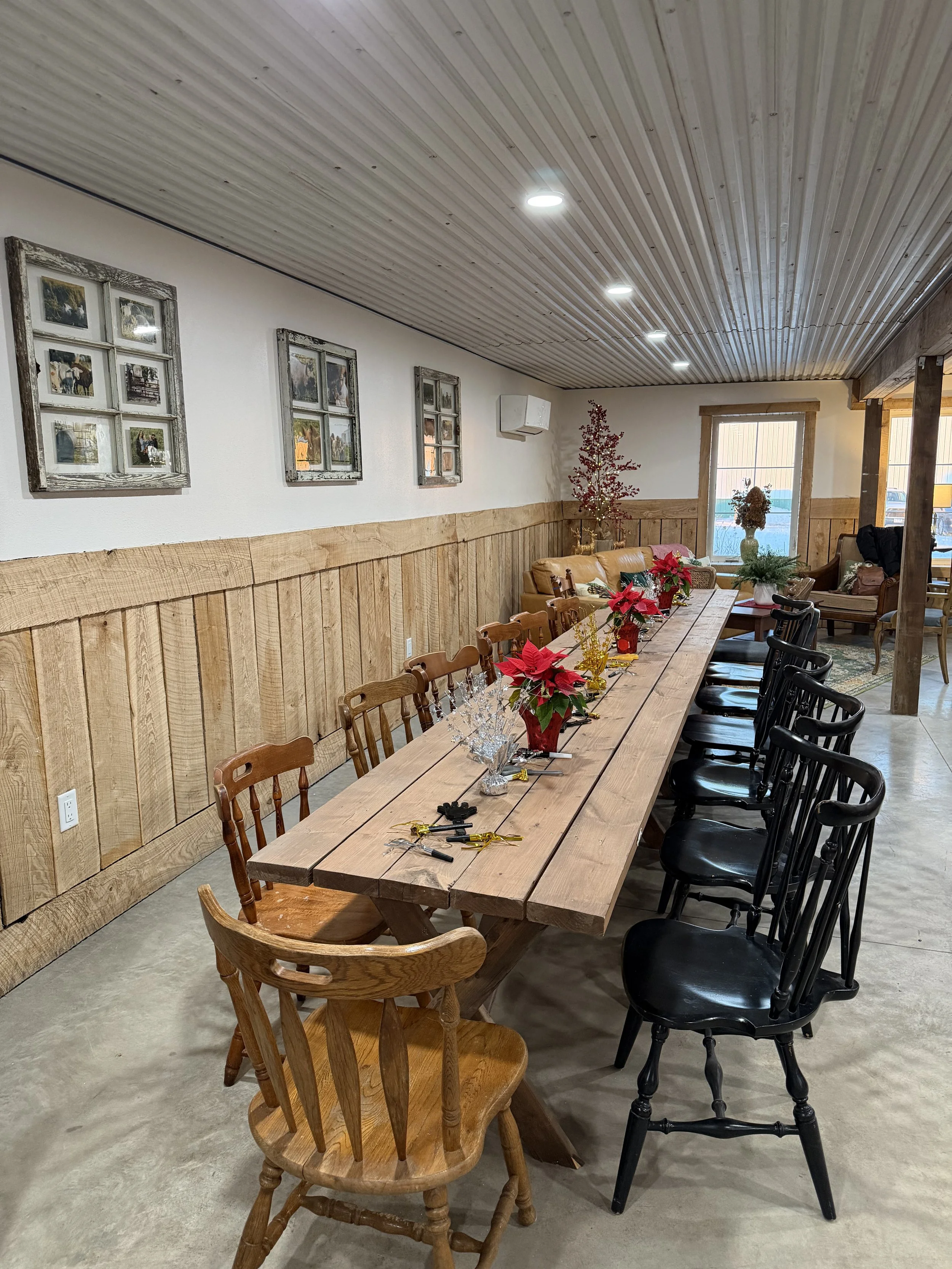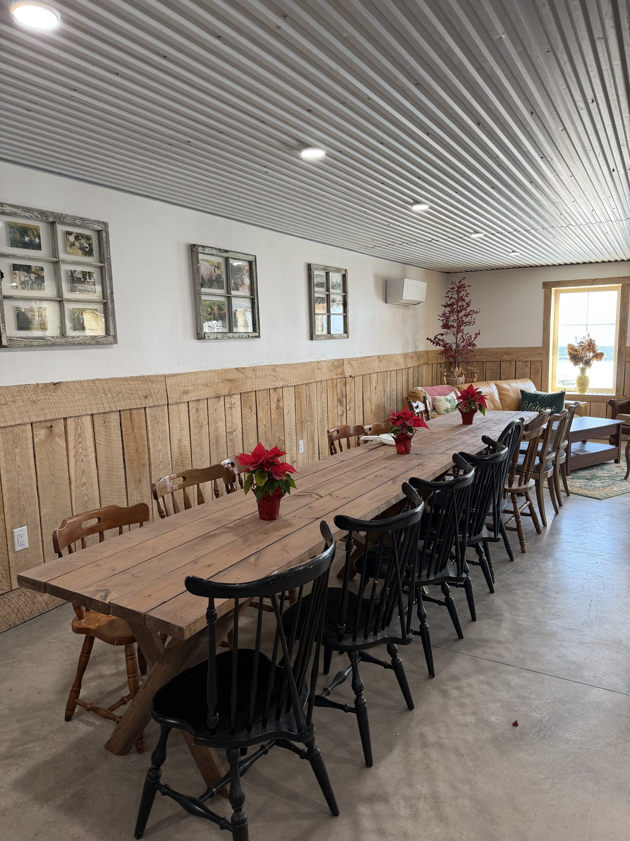 Our space blends farmhouse warmth with modern comfort, perfect for: